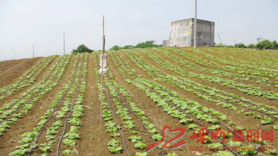 家园村原来有100多亩荒坡地,由于地势高, 沙性重, 坡度陡,水分难以保持。以往,有人种过毛竹,也有人种过果树,但都没有成功。如今,通过在山坡高处建池,在坡地上埋管,池水通过小小的塑料管子涓涓流入种植蔬菜、西瓜的畦里,昔日荒地变菜园。眼下100多亩高山上已种植的小辣椒、玉米、10月迟西瓜及各类冬菜,长势良好。