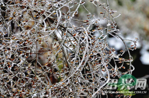 昨日,嵊州市通源乡出现雾凇景观。两天前嵊州市今冬的第一场雪,将嵊州市海拔700米左右的高山打扮得银装素裹,加上雾凇景观的出现,更显得妖娆美丽。据了解,雾凇景观多出现在我国北方,南方地区较为罕见。(来源: 绍兴网-天天商报)