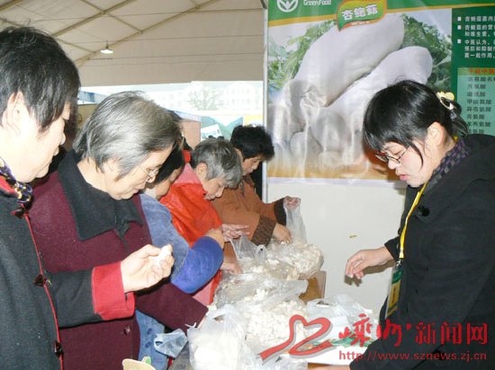 为期三天的绍兴市首届金秋森林休闲节于11月20日开幕,我市12家农业龙头企业参加在绍兴城市广场举行的特色农产品展销活动,嵊州虎居动物园、百丈飞瀑森林公园以及部分特色农家乐同时举行相关宣传推介活动。图为我市特色农产品在绍兴城市广场热卖场景。
