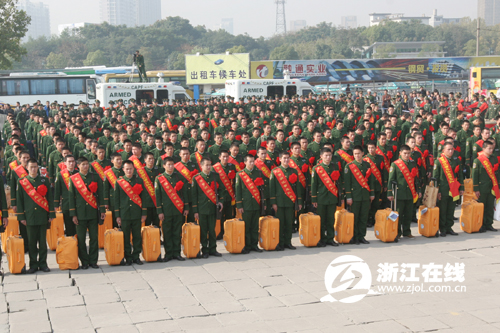 浙江在线杭州11月25日讯 (通讯员 陈瑞东 闫拥洲 颜石斌) 又是一年枫叶红,依依不舍送别情。11月25日,在全省各地的车站,港口、机场到处挂满了“热烈欢送武警退役士兵光荣返乡”“祝退伍老兵一路平安”等横幅,欢送满服役期的武警老兵返乡。