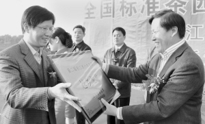 在颁奖仪式上,省农业厅厅长孙景淼为获得浙江省特别荣誉名茶和第二届浙江省十大名茶的县(市、区)授牌并颁发荣誉证书。