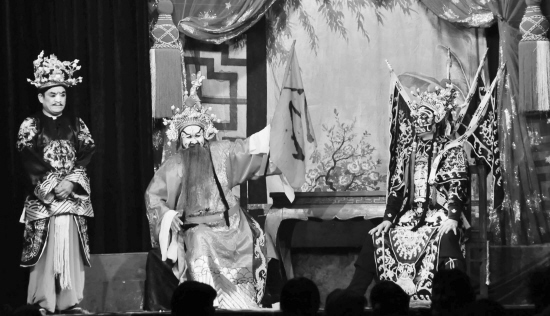 在嵊州乡村,绍剧是仅次于越剧的一大剧种,能文能武的绍剧与温文尔雅的越剧,在舞台演出上风格迥异,满足了不同需求的戏迷。 图为12月4日晚上,该市剡湖街道沙园村正在演出绍剧《两狼山》。 (来源:绍兴网—绍兴日报)