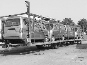 12月6日中午,甬金高速公路嵊州段出现了一辆很“骨感”的怪车,车上装载了8辆面包车,最终被高速交警查获。