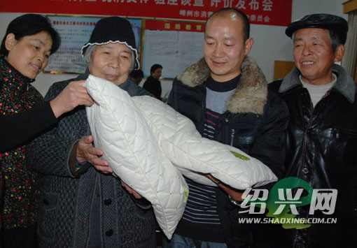 一年前,嵊州市推出了68家企业的72只创业项目,该市剡湖街道屠苏娥拥有两项国家专利的中草药保健枕头成为创业项目之一。昨日,在嵊州市消费者权益保护委员会组织的首个消费体验座谈及评价报告会上,消费者代表正在体验这种新产品。(来源: 绍兴网-天天商报)