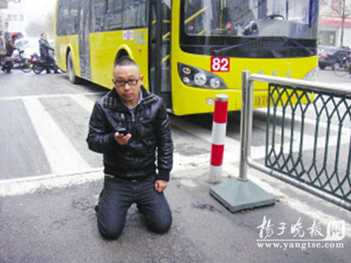 新华报业网-扬子晚报12月10日报道 昨天下午,一辆82路公交车刚刚驶离站台,一乘客突然在车厢尾部摔倒,并称自己受伤。司机怀疑该乘客“碰瓷”敲诈,哀求乘客出来证明自己无责,看不少乘客陆续离开,他竟跪倒在马路上,恳请乘客留下作证。四五位乘客被他的诚意感动了,愿意留下作证。司机随后再次在公交车上跪倒,感谢乘客。