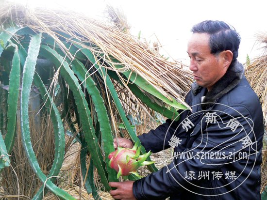 市剡江火龙果专业合作社于去年5月投资100多万元,从台湾引进试种热带水果——火龙果,今年开始少量挂果,试验获得初步成功。目前,该合作社位于甘霖镇上沙地村的火龙果基地面积已扩大到20亩左右。随着气温逐渐下降,从上个月起,该合作社采用双层薄膜、加盖稻草、照卤钨灯等多重保暖措施,确保火龙果顺利过冬。