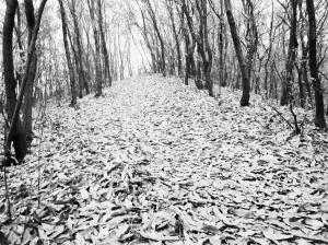 入冬以来,位于嵊州市区的艇湖山郁郁葱葱的树木叶子纷纷枯黄飘落,落在山上,金黄一片。(
