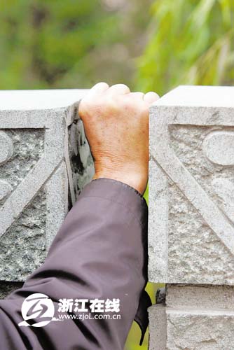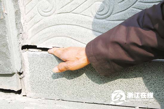吴家石桥,中间通车,两边行路。崭新的雕花桥栏上,布满了黑色裂缝,有36处之多。每根望柱和桥栏、桥身的接缝处都有裂缝,可塞进手掌。不少裂缝已经糊上了水泥。