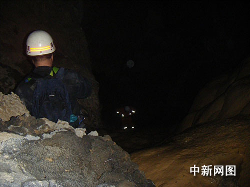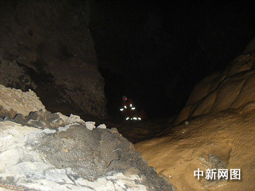 但由于洞内空间异常大,还有涓涓流动的地下河,加上探险队员们对遗骸残存地点描述的不是很具体,官兵们在洞内严密的排查了近一个小时才在另一个陡壁的洞中洞即第三平台,发现了探险队员们所描述的人体遗骸。