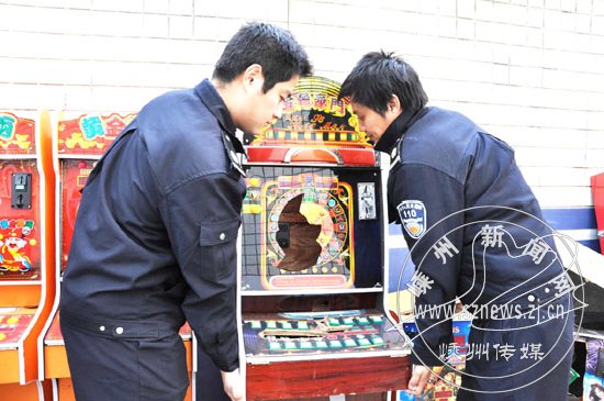 今年上半年,市公安局收缴了近千台“老虎机”,并进行现场销毁,净化了社会环境。日前,三江派出所110民警对辖区再次巡查时,依法对40余台“老虎机”进行收缴。图为12月19日,110警务人员收缴“老虎机”的现场。