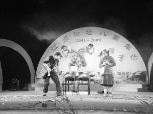 19日晚上,嵊州越剧艺术中心内,来自嵊州各地的几百名网友欢聚一堂,为嵊州江南论坛庆祝八周年生日会,此次网友见面会由网友自发组织,晚会的节目都是网友自编自导自演,内容涉及舞蹈、小品、诗朗诵等。记者了解到,晚会后还有一个重要活动,就是网友将在网上征集10名生活上需要帮助的人,大家将发动网络的力量来帮助他们。(来源:绍兴网—绍兴晚报)