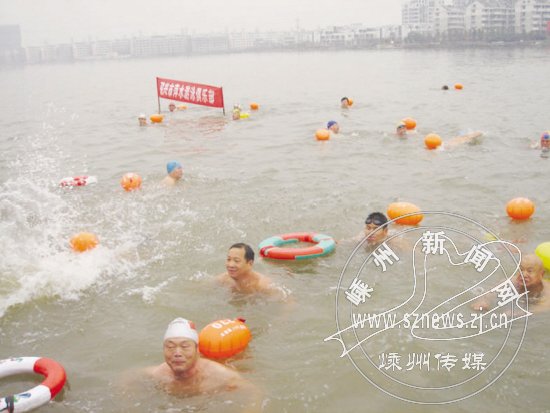 嵊州冬泳队员参加冬泳表演赛