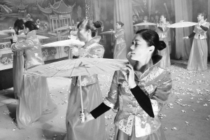 嵊州市三界镇南街村有一支训练有素的“嫂子演出队”,她们以娴熟的舞伞技法、优美的舞姿,多次在该市文化活动中亮相。图为日前这支演出队正为该村文化节进行压台戏的表演。 (
