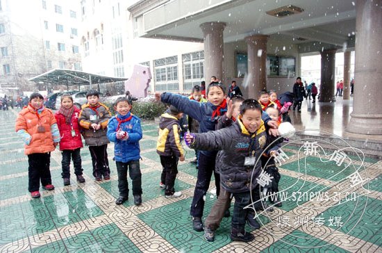 在学校里,一下课,不少孩子冲出教室,捏着雪团,打着雪仗,通红的双手热呵呵的。