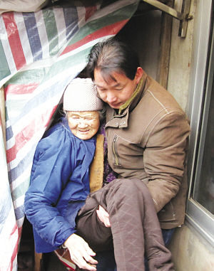 新华报业网-扬子晚报1月12日报道 前天南京飘起了雪,在建邺区江心洲街道,一位九旬老太却蜗居在自家院中的窝棚里。窝棚的四周用塑料布裹了一圈,即使这样,仍然透着寒风,老太有4个女儿2个儿子,而且都丰衣足食。更令人诧异的是,柴房是老太的儿子安排的,而柴房的一墙之隔,就是她外孙女家的房子,但是用来出租和堆放杂物。老人的邻居说,有这样的儿孙,恐怕心比天还要冷。好在江心洲街道工作人员在得知此事后,立即找到老人的子女,斥责了他们的行为并将老人先搬回儿子家居住,下一步街道将和老人的几个子女共同协商赡养问题。