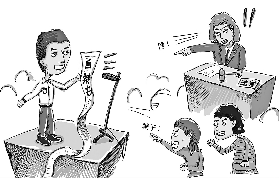 昨天的法庭上,李枫又展示了他能言善辩的一面。他写了一封长达33页的辩解书,在庭上像在保健品推销会议上演讲般滔滔不绝地宣读。读到一大半,法官都受不了了,喊了“停”。李枫对检方指控的诈骗一说不满,他认为这属于民间借贷,并非诈骗。他说自己都跟她们打过借条,虽然后来没有还,但有的借条上写明可以“以身低债”。