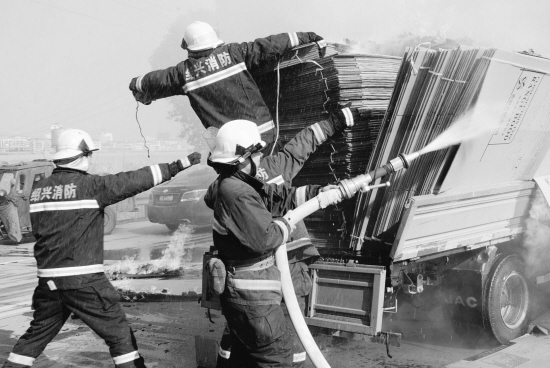 昨天下午1时许,一辆满载纸板箱的货车,在经过嵊州市环城南路城南桥头路段时,纸板箱突然起火,造成双向堵车。嵊州市消防大队接到报警后立即赶往出事地点,奋力扑救。车主求师傅说,起火原因可能是有人将烟头扔到了货车上。(来源:绍兴网—天天商报)