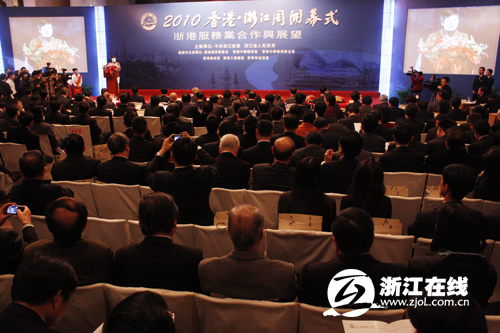 省委书记、省人大常委会主任赵洪祝在开幕式上作了题为“深化浙港服务业合作,推动两地共同繁荣发展”的主旨演讲。他指出,这次以浙港服务业合作与展望为主题举办“2010年香港·浙江周”活动,旨在通过扩大既有的合作平台,巩固既有的合作成果,进一步推进两地经贸、科技、文化等方面的交流与合作,为浙港两地在新形势下建立长期、稳定的战略合作关系奠定更加坚实的基础。