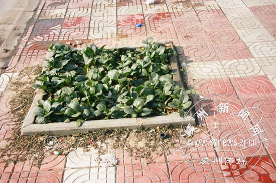 一景路中段的人行道上,共设有树孔20孔,奇怪的是,这些树孔并没有栽种行道树,而是栽种着青菜。这究竟是为什么呢?