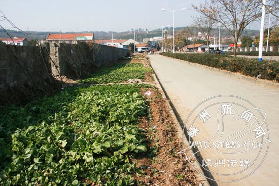 江滨西路西首,有一段人行道上围着篱笆,里面栽种着绿油油的青菜,行人走到这里,只好走非机动车道,给行人带来不安全因素。