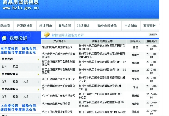 杭州市房管局市场处相关负责人告诉记者,透明售房网在接受房产商和购房者达成的退房申请时,都要对退房理由进行充分的核实,只有退房理由正当,不扰乱正常的商品房销售秩序,房管局才同意给其退房。