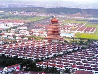 别墅群簇拥下的华西金塔,它曾经是华西村的第一高度