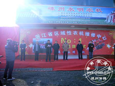 2009年的最后一天,嵊州市永明农机专业合作社内格外热闹,浙江省首家区域性农机维修中心的挂牌成立仪式在这里举行。上午10时,浙江省农业厅赵副厅长和绍兴市农业局张局长为嵊州市永明农机专业合作社的维修中心挂上全省首家区域性农机维修中心的牌子。前来参加本次挂牌仪式的领导还有浙江省农机局杨局长、嵊州市人民政府郑副市长、嵊州市农业局王局长、嵊州市三界镇人民政府吕镇长、洋马中国有限公司马副总经理等。