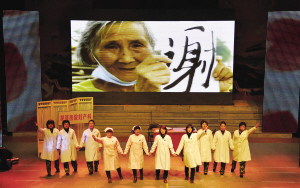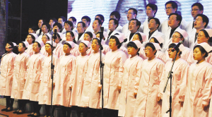 医务工作者在舞台上地载歌载舞,由院长张飞鹏带着众多员工合唱的《嵊州市人民医院院歌》、诗朗诵等节目,表达了对人民卫生事业和医院的热爱,抒发了心声,展现了白衣天使的风采。 (来源:绍兴网—天天商报)