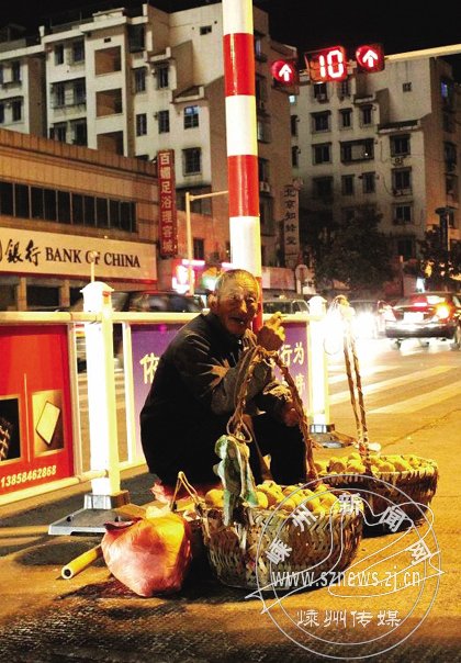 摄影:踏雪无痕(网名) 作者自述:寒冷的夜晚,一位老农坐在路灯下卖地瓜,一张沧桑的脸上写满生活的艰辛。