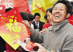 浙江嵊州瑞丰村镇银行是绍兴市首家村镇银行,前天该行把庆祝成立一周年庆典改为“送福送春联送支农政策”活动,把万余张喜庆的福字和对联赠送该市农村居民,还到结对的敬老院进行了慰问。(来源:绍兴网—天天商报)