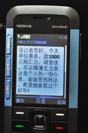 昨天下午,绍兴一位不愿透露姓名的先生往记者的账号里打进1000元钱,让记者转交给王明敏家。他还发来短信,祝愿王明敏能过个好年。
