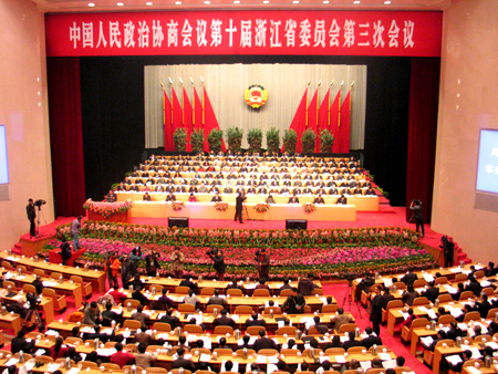 新华网浙江1月25日电 浙江省政协十届三次会议开幕 (陈晓明 摄)