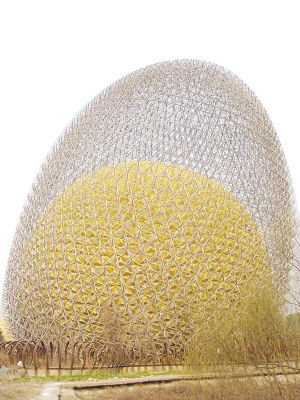 资料显示,镇江“巨蛋”高48米,最大直径38米,与地面倾斜达23.5度,通透的“蛋壳”嵌着一个直径28米的“蛋黄”。这个417吨的庞然大物里面没有一根支柱和横梁,全凭自身牵引力达到平衡支撑。