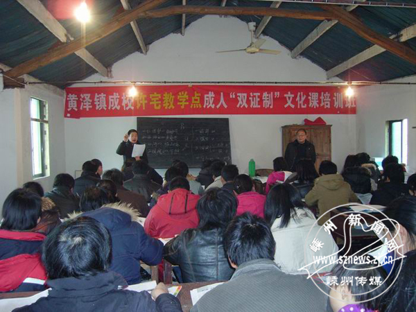 为建设新农村,提高全镇农民朋友整体文化水平,目前,黄泽镇成校已在许宅、前良、青石桥、双鸟机械等村与厂家内设立成人“双证制”继续教育点。