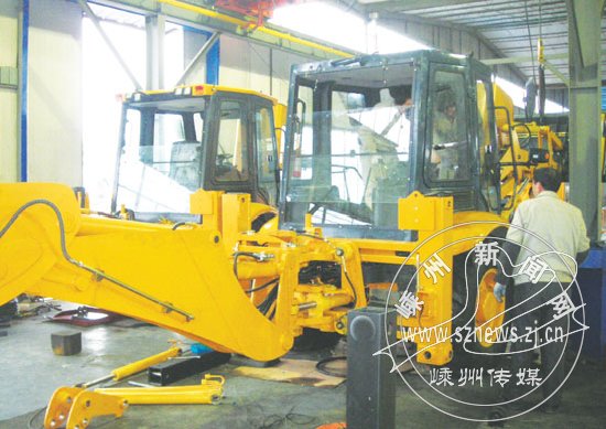 位于三界工业功能区的浙江福威重工制造有限公司,是一家专业研发、制造销售工程机械为一体的大型重工企业。去年底,“福威重工”总投资1亿多元、年产1万台多功能滑移装载机生产线(一期)技术改造项目,被国家发改委、工信部列入“重点产业振兴和技术改造(第三批)2009年新增中央预算内投资计划”。图为公司装配车间。