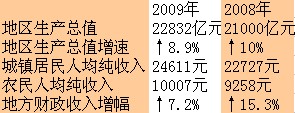 今天上午,同样在省人民大会堂,吕祖善向全省人民报告:2009年,浙江实现地区生产总值22832亿元,比上年增长8.9%,地方财政收入按可比口径增长7.2%。