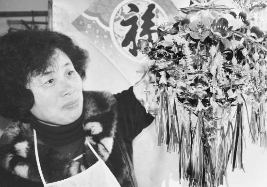 近日,嵊州市北漳镇的一位女士正在家门口挂民间折纸工艺品,迎接春节。 据了解,北漳折纸工艺品是绍兴市文化遗产之一。 (