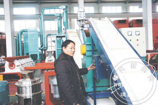 丰利公司依托先进的废铝塑复合材料的粉碎解离技术和高压静电分选技术,率先推出废塑料基复合材料回收处理成套设备,有效破解了此前国内无法用物理方法来解决废塑料基回收利用的技术难题,进一步减少废塑料造成的“白色污染”。图为工作人员正在调试设备。