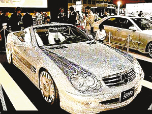 这辆梅塞德斯·奔驰SL-Class轿车全身镶满钻石闪闪发亮,灿烂得让人目瞪口呆。据悉,该车至少也值几百万美元。