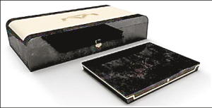 由白金铸成,镶有红宝石、蓝宝石、翡翠、钻石,其中钻石840颗,宝石总重20克拉。售价73万美元(约合人民币548万元)。