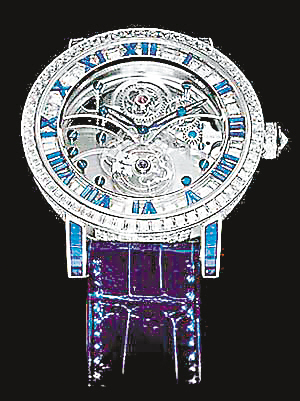 这款限量版瑞士昆仑表镶有850颗钻石。根据不同版本,售价从32.5万美元(约合人民币244万元)~99.8万美元(约合人民币749万元)。全球仅十支。