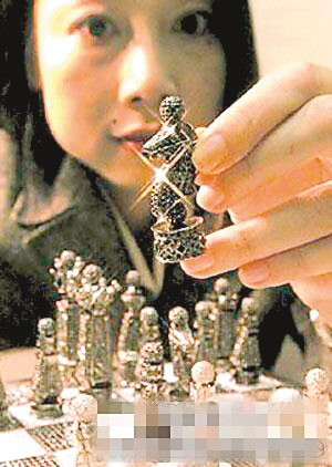 堪称世界上最昂贵的象棋。镶有9900颗黑色和白色钻石,总价值50万美元(约合人民币375万元)。