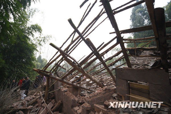 1月31日在遂宁市安居区磨溪镇拍摄的垮塌的房屋。新华社发(钟敏 摄)