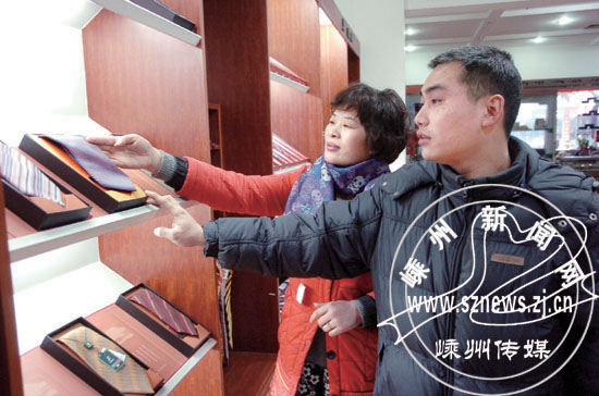 记者从市领带行业协会获悉,2009年我市领带出口数量为1.34亿条。虽然同比略有下降,但全球领带产业仍有向嵊州进一步集中的趋势。经过金融危机的洗礼,嵊州领带占全球领带的份额已从原来的40%多上升到50%多。图为客户在挑选领带。