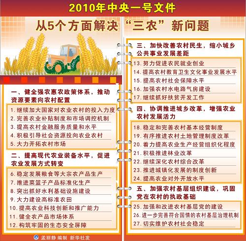 图表:2010年中央一号文件从5个方面解决“三农”新问题。新华社发