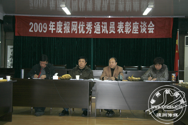 座谈会由副总编袁晓东主持。中心主任、总编钱树军通报了2009年新闻宣传主要工作,提出了2010年“报纸做精,网络做强,经营做活,队伍做优”的目标任务,并希望获奖通讯员继续积极努力,共同把新闻宣传工作做得更好,把新闻传媒事业推上新的台阶。副总编王红卫宣读了表彰决定,副主任、副总编郑国柱一起为获奖者颁奖。