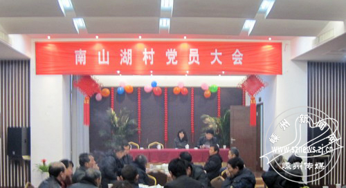会议指出,近年来南山湖村深入贯彻落实科学发展观,以创建生态型村庄目标,全面开展环境整治活动,先后实施路面硬化、村庄绿化和亮化工程、自来水改造工程等一系列的实事惠民工程。特别是自行政村规模调整以来,全村以省级南山湖风景区为依托,充分利用现有的自然资源,基本形成了农业、工业和服务业一体化的发展格局:一是大力发展以900亩冷水茭白、12只冷库为基点,150亩白茶和500亩绿茶为重点的绿色农业;二是以建造1000平方米的名茶炒制集聚区为中心,有力推动“农户+基地”的生产经营模式建设,实现农民增收增效;三是充分利用南山湖的优美环境,合理开发了以休闲、观光和旅游为主的农家经济型服务行业,逐步形成了以快活灵、湖畔人家、桥头堡和南山湖大鱼头等为主的农家乐饭店。