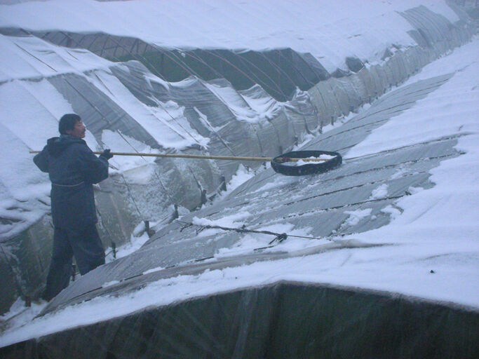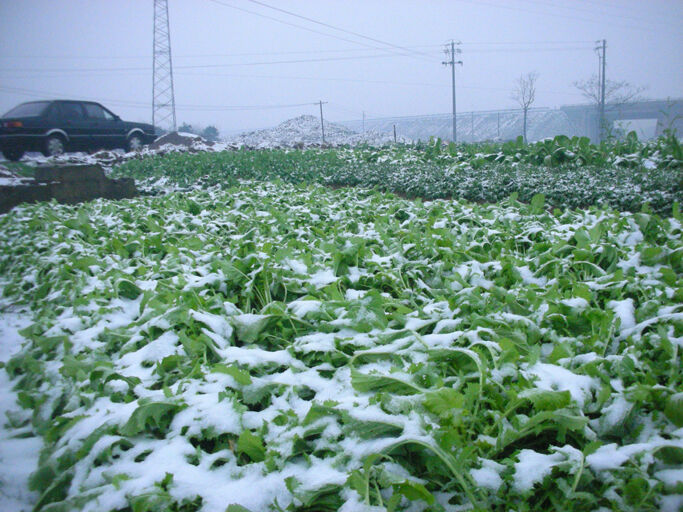 今天一早,记者在浦口街道蒋林头村田地里看到,积雪已覆盖了该村的好多蔬菜大棚。村民葛绍荣正在给种有草籽的大棚扫雪,他告诉记者,昨晚的大雪对草籽影响不大,于是,他到大棚里摘起了草籽,这几天,草籽可卖到10多元钱一斤。这种平常三四月份才上市的草籽,通过大棚种植提早上市,超过了猪肉价格。据介绍,他种有5个大棚的草籽,有四季可采摘,估计每亩有4000元至5000元的收入。图为葛绍荣正在采摘草籽。