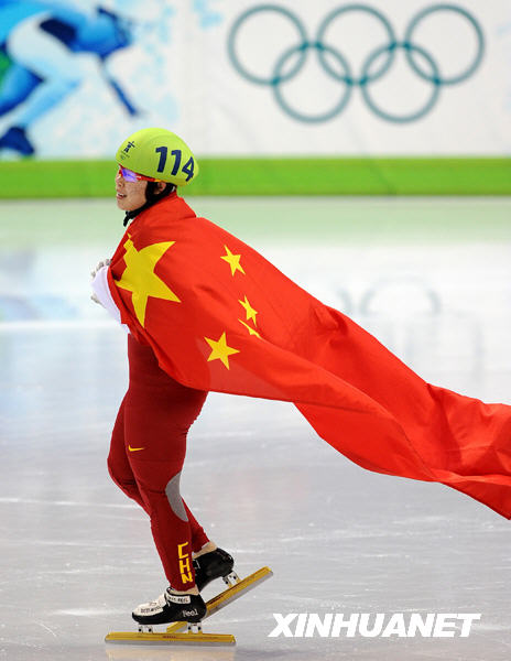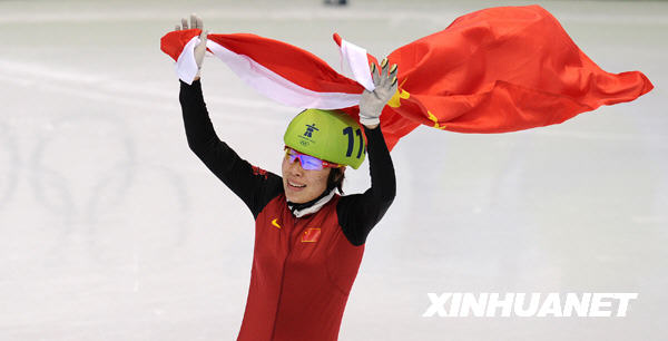 2月20日,在温哥华冬奥会上,中国选手周洋获得短道速滑女子1500米冠军。这是周洋在比赛获胜后庆祝。新华社记者 陈凯 摄