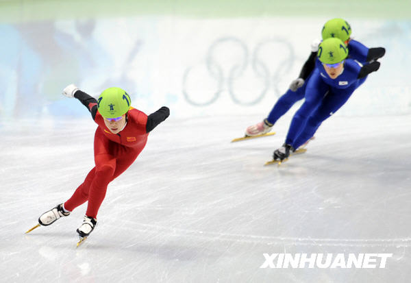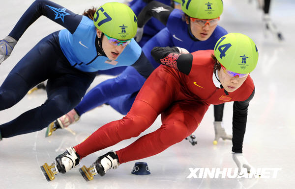 2月20日,在温哥华冬奥会上,中国选手周洋获得短道速滑女子1500米冠军。这是周洋在比赛中超越对手。新华社记者 杨磊 摄